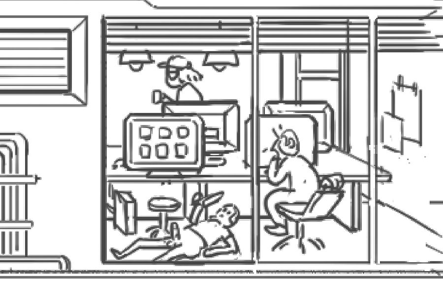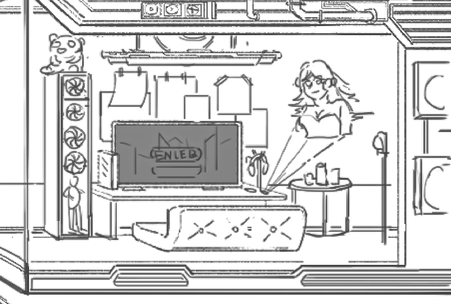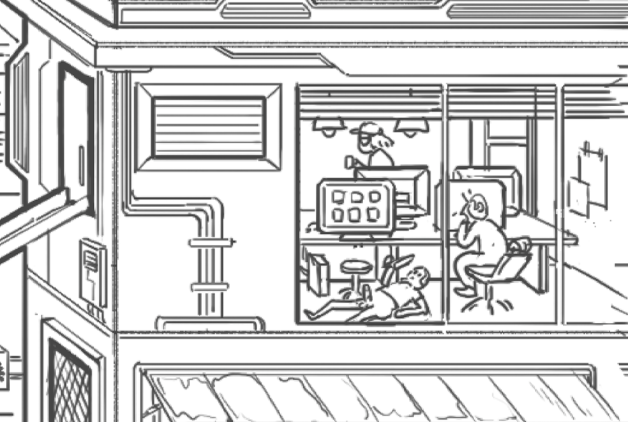 Used to be an abandoned bank vault, now become a meeting room for Komios to announcement new message and broadcast for everyone.